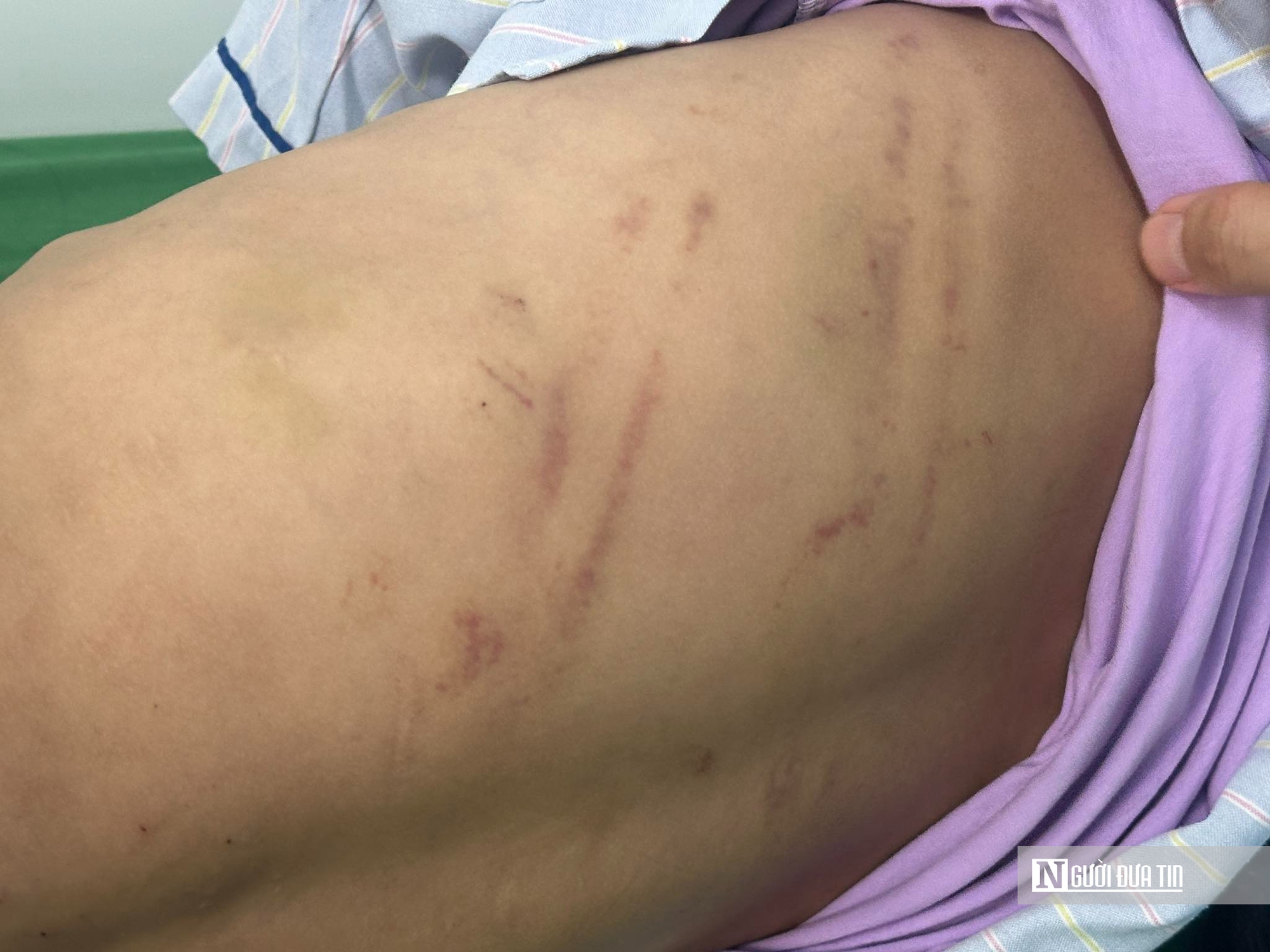 Trên cơ thể bệnh nhi cũng có nhiều vết bầm tím. Đây là các dấu vết do bị tác động bằng vật rắn, các vết thương mới, nghi bị bạo hành trong thời gian gần đây. Ngoài ra, trên người bệnh nhi còn có nhiều vết thương cũ đã mờ, liền sẹo, không đếm xuể.