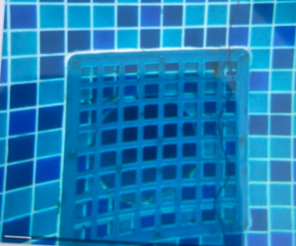 Tấm lưới dưới hồ bơi, nơi hút chặt bé Yukiji. Ảnh: Liên Trần
