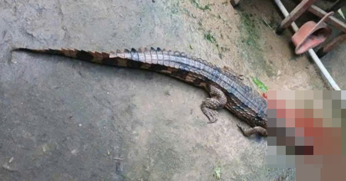 Con cá sấu sổng chuồng, cắn rách chân thầy giáo ở Tây Ninh. Ảnh: AD.