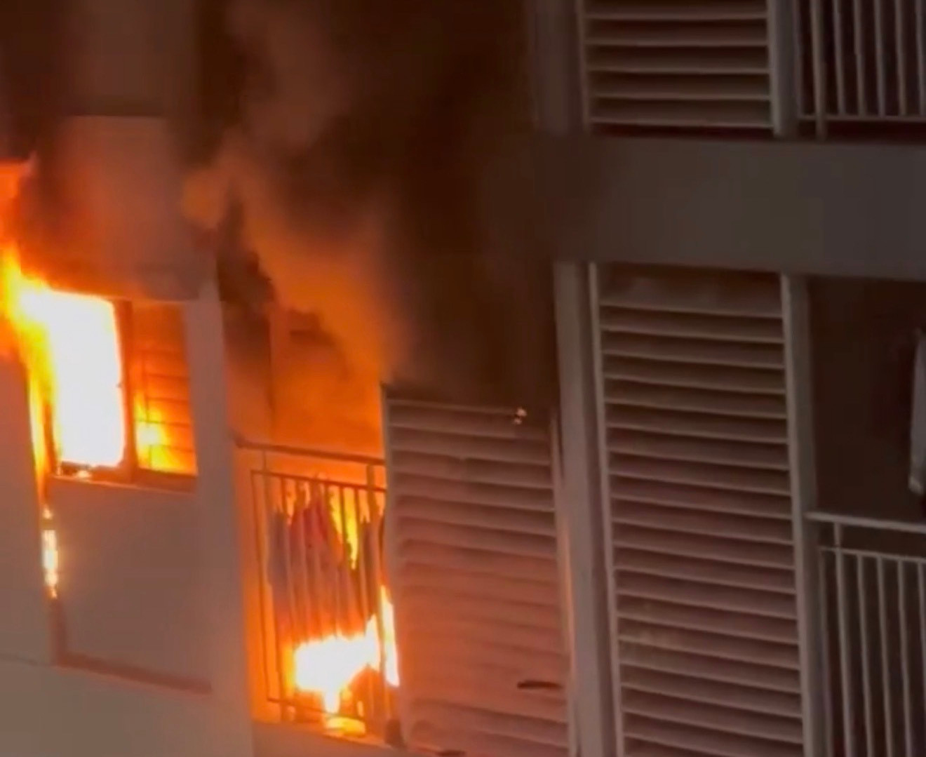 Lửa bùng lên trong căn hộ chung cư. ( Ảnh chụp màn hình)