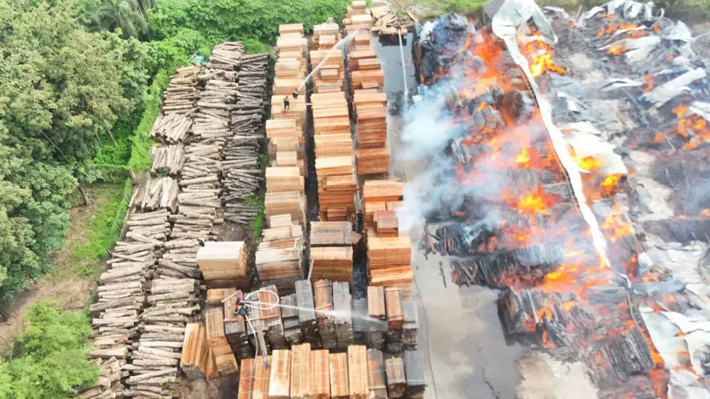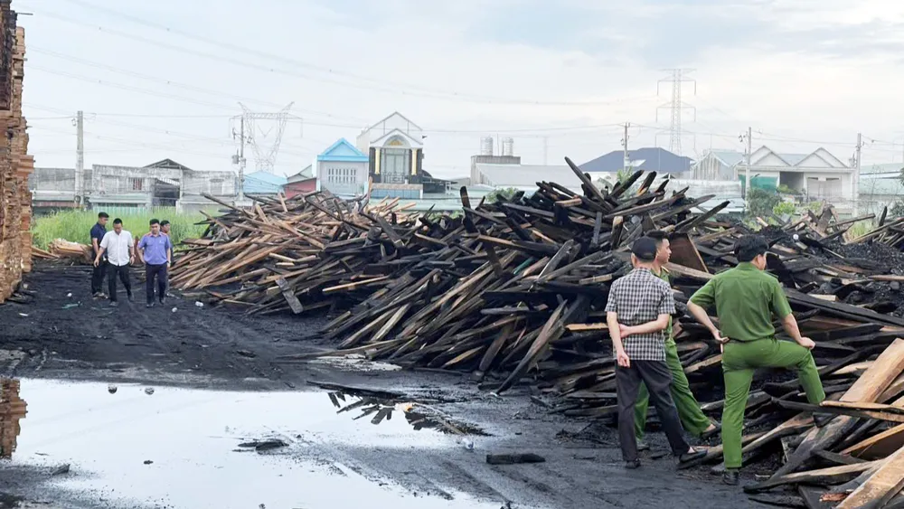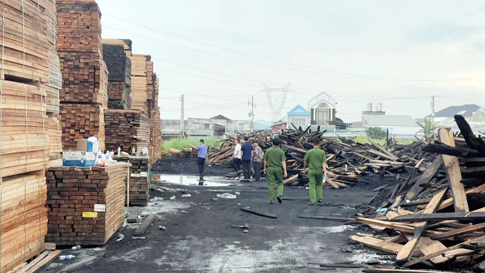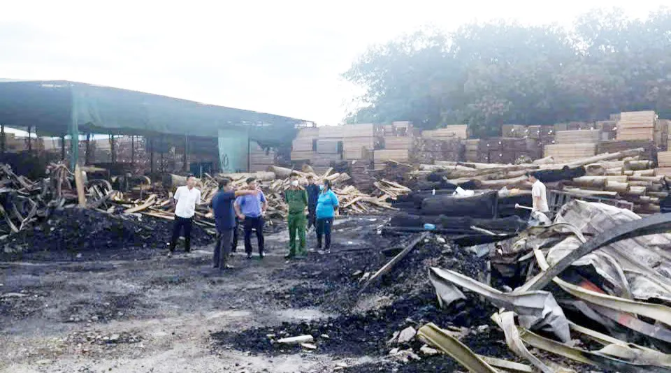 Khu vực xảy ra vụ cháy chứa nhiều nguyên liệu dễ cháy như mùn cưa, dăm bào, các sản phẩm từ gỗ nên ngọn lửa lan nhanh, bùng phát mạnh.