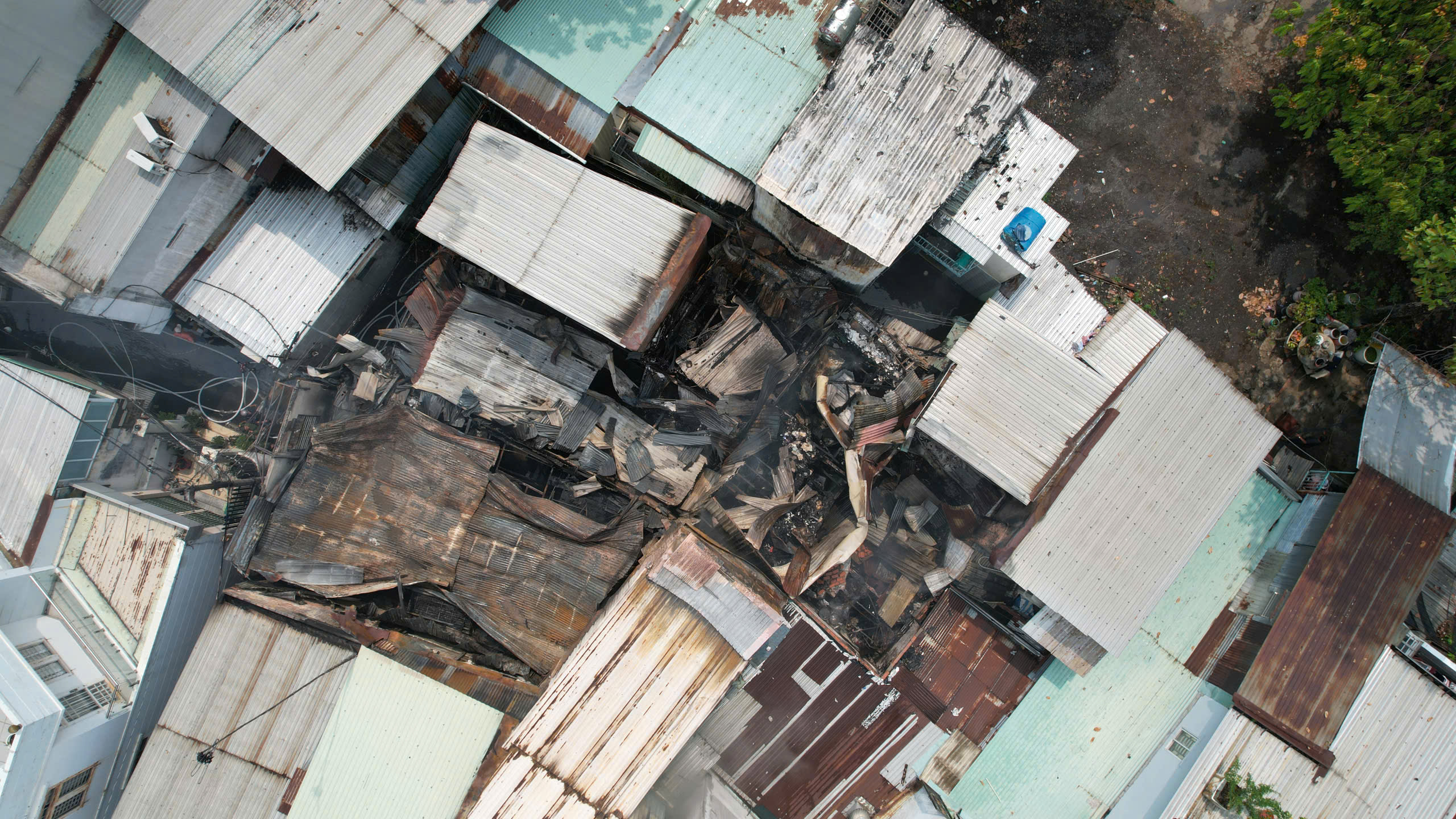 Vụ cháy được cho là xuất phát từ một ngôi nhà rộng khoảng 50m2 rồi lan ra. Ảnh: H. TÂM