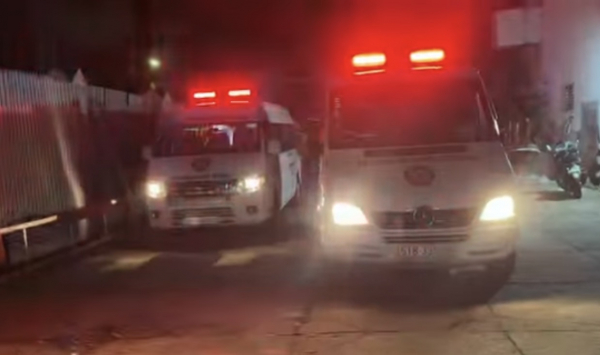 Xe cứu thương túc trực tại hiện trường trong đêm.