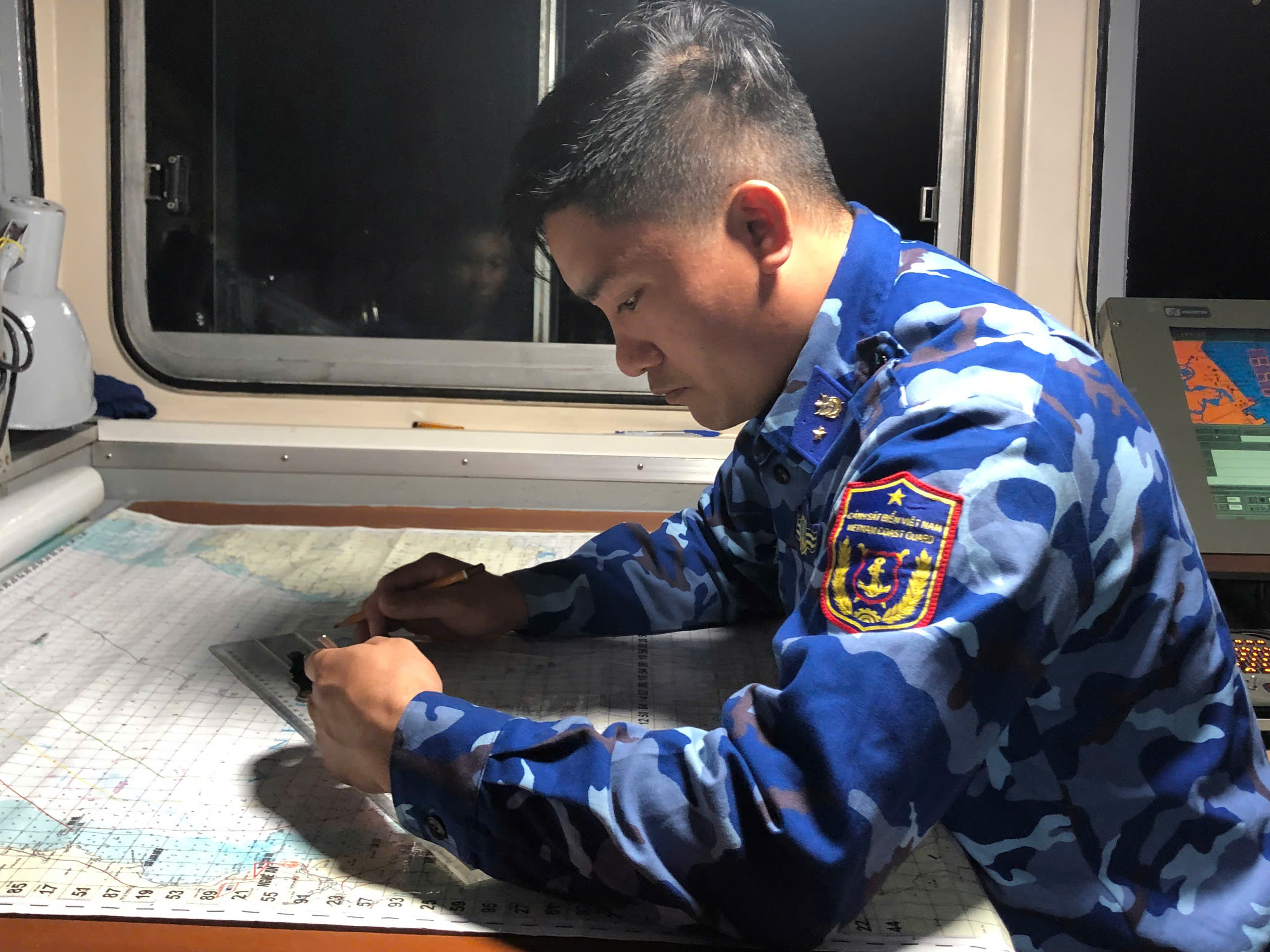 Lực lượng Cảnh sát biển khoanh vùng khu vực tàu cá bị chìm để triển khai công tác cứu hộ