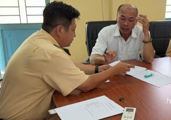 Cán bộ điều tra làm việc với tài xế xe tải Lương Văn Quốc.