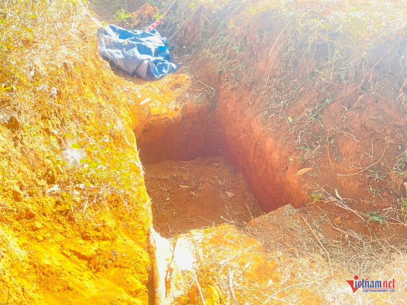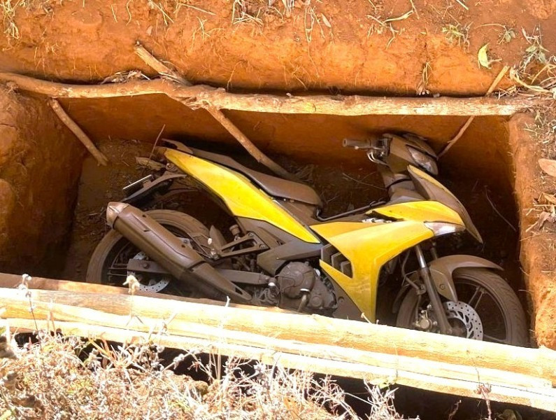 Theo cơ quan công an, hố chôn xe được đào dài khoảng 2m, rộng gần 0,8m, sâu hơn 1m. Dọc theo chiều dài hai bên miệng hố, các đối tượng gác một số đoạn gỗ làm giá đỡ.