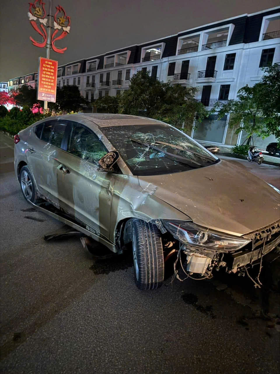 Chiếc xe bị hư hỏng nặng sau khi đám đông dùng gậy, đá đập phá. Ảnh: CTV