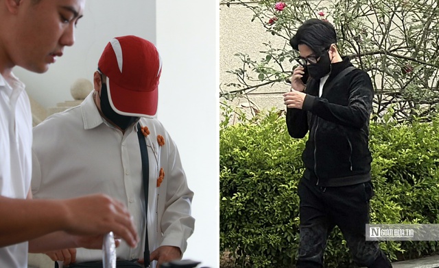 Trong thời gian ngắn nghỉ trưa, nam ca sĩ Vũ Ngọc Hà thay đổi trang phục từ đồ đen sang trắng và đội thêm mũ đỏ để dự tòa.