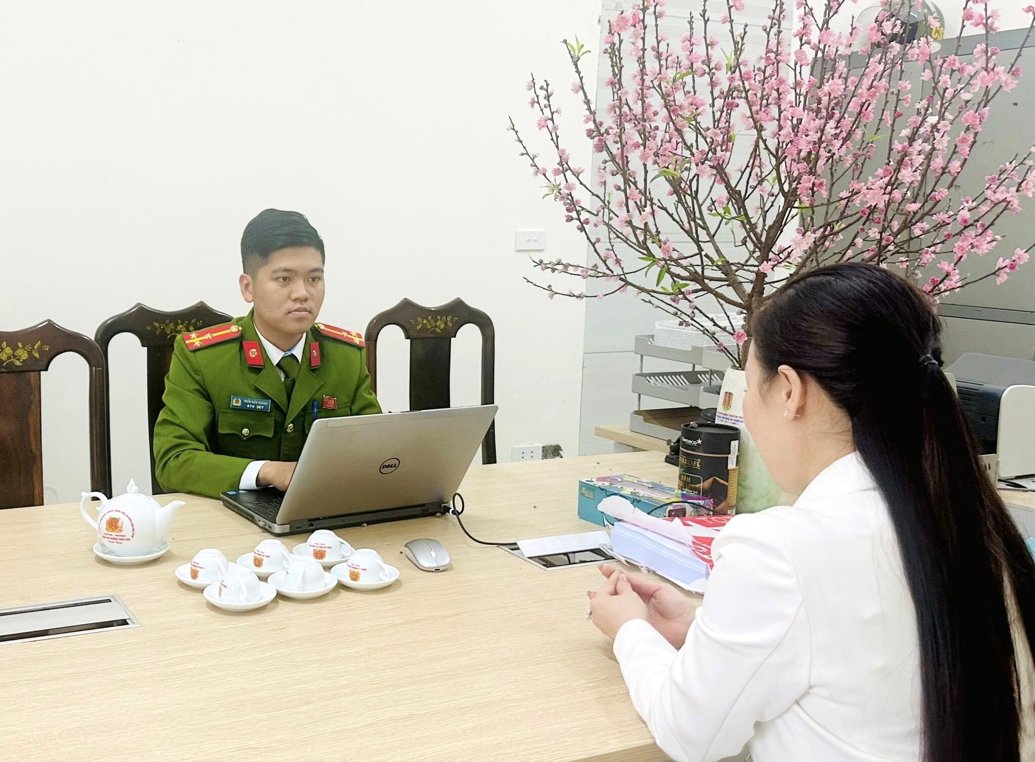 Chị Đ.T.H tại cơ quan Công an. (Ảnh: Công an phường Trần Phú)