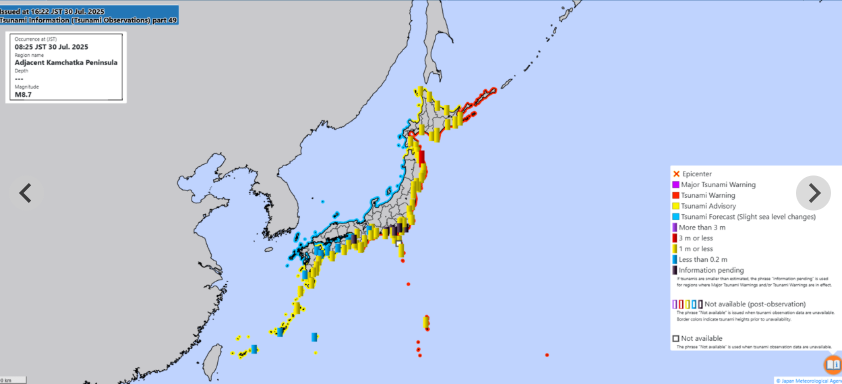 Bản đồ cảnh báo sóng thần trên trang web của Cục Khí tượng Nhật Bản.