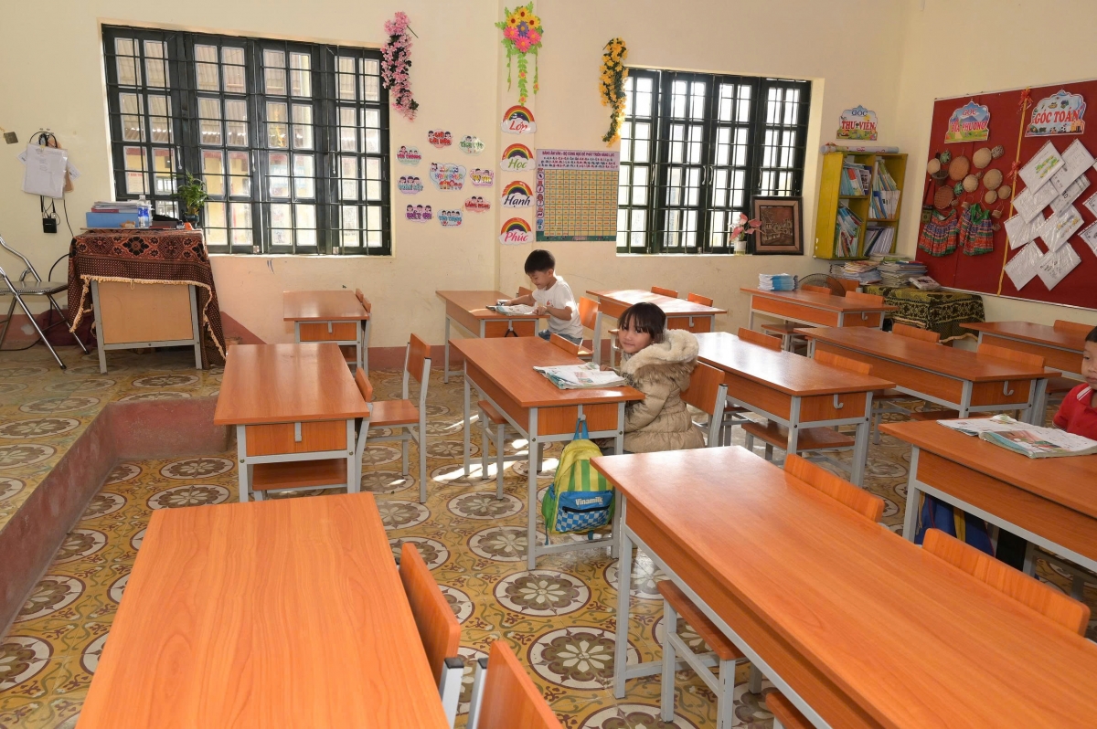 Khung cảnh vắng lặng bất thường tại một lớp học Trường PTDTBT Tiểu học Hoàng Liên ngày 22/12