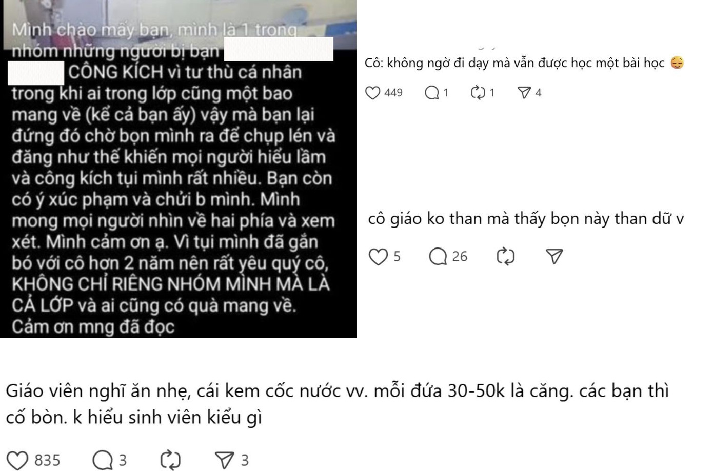 Tâm điểm tranh luận những ngày qua xuất phát từ loạt bài viết trích dẫn chia sẻ của một sinh viên về hóa đơn ăn uống lên tới 12 triệu đồng. Theo nội dung bài đăng, một giảng viên vì đã ngỏ lời mời nhóm sinh viên một bữa "ăn nhẹ". Tuy nhiên, khái niệm "nhẹ" đã hoàn toàn bị phá vỡ khi các bạn không chỉ dùng bữa tại chỗ mà còn nhiệt tình... mua đồ mang về. Hậu quả là chiếc bill "nhảy số" khiến nhiều người choáng váng.