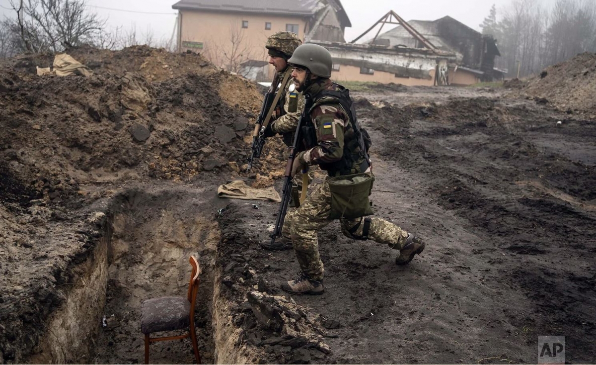 Binh sỹ Ukraine tiến gần một chiến hào. Ảnh: AP