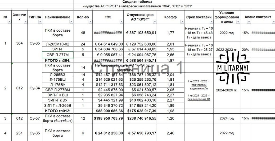 Một lá thư từ Tập đoàn công nghệ vô tuyến - điện tử (KRET) gửi ban quản lý Công ty xuất khẩu hệ thống hàng không chuyên dụng NASK vừa được đăng tải trực tuyến đã cho thấy bản kế hoạch được cập nhật nhằm hình thành giá bán tối thiểu cho các hợp đồng vũ khí nước ngoài.