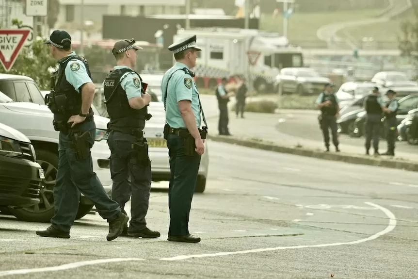 Lực lượng cảnh sát Australia thực hiện nhiệm vụ bảo vệ an ninh tại bãi biển Bondi sau vụ xả súng. (Nguồn: ABC News)