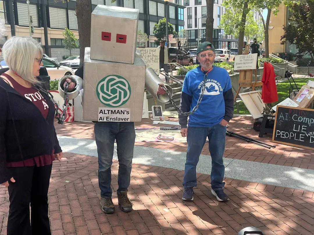 Nhóm biểu tình đã dựng hàng chục biển hiệu chống AI bên ngoài tòa án với những thông điệp như “Các công ty AI nói dối, người dân sẽ chết”; “Các công ty AI đang chạy đua để xây dựng siêu AI, đang chơi trò chơi may rủi với tất cả cuộc sống của chúng ta. Hãy dừng sự điên rồ này lại. Hãy ngăn chặn ngày tận thế AI ngay bây giờ”… Một tấm biển có hình vẽ thần chết bên cạnh dòng chữ “AI - Hoặc chúng ta ngăn chặn nó, hoặc nó sẽ ngăn chặn chúng ta!”.