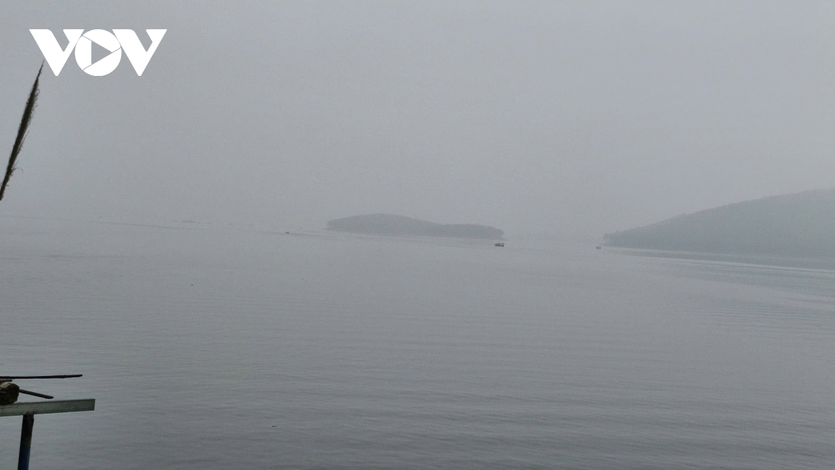 Mặt hồ có sương mờ nên công tác tìm kiếm gặp khó khăn
