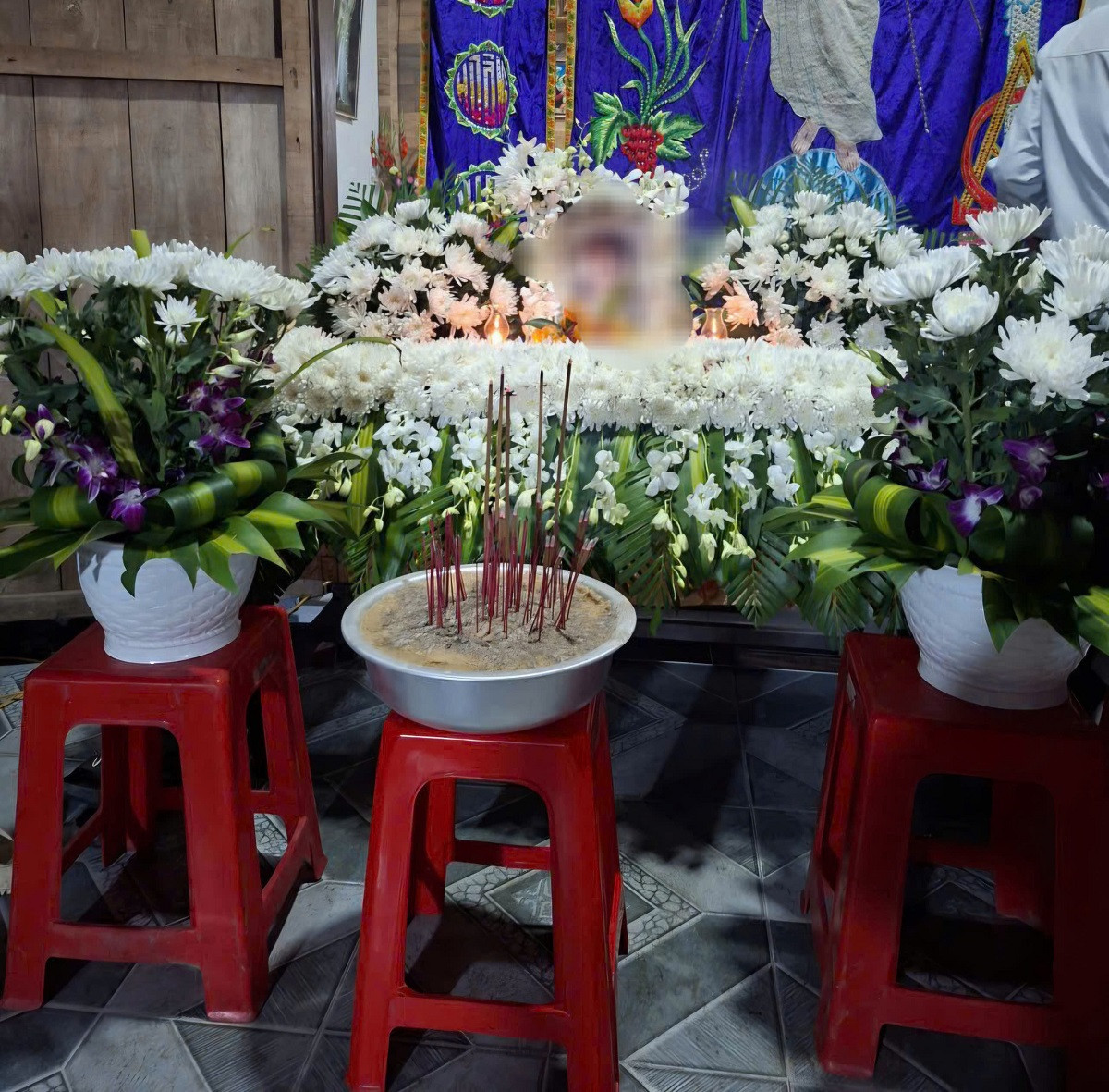 Không còn tiếng cười trẻ thơ hay không khí rộn ràng đầu Xuân, trong nhà chị Hà là những bàn thờ lập vội, khói hương nghi ngút, những đôi mắt đỏ hoe của người thân, xóm giềng đến chia buồn cùng tang gia.