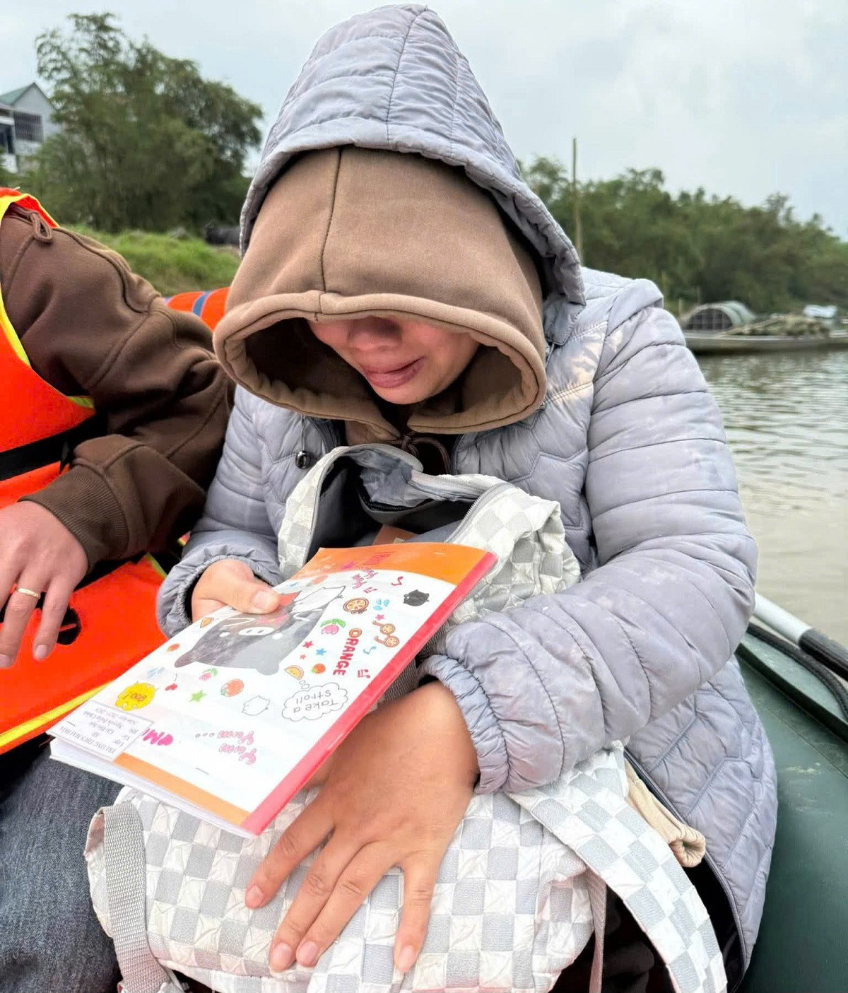 Giữa mênh mang sóng nước, chiếc thuyền cứu hộ lướt chậm trên mặt sông. Giọng chị Hà run lên, lạc đi: “Cún ơi, con về với mẹ nha… Ông nội về rồi, còn mình con thôi. Về với mẹ kẻo lạnh con ơi…”