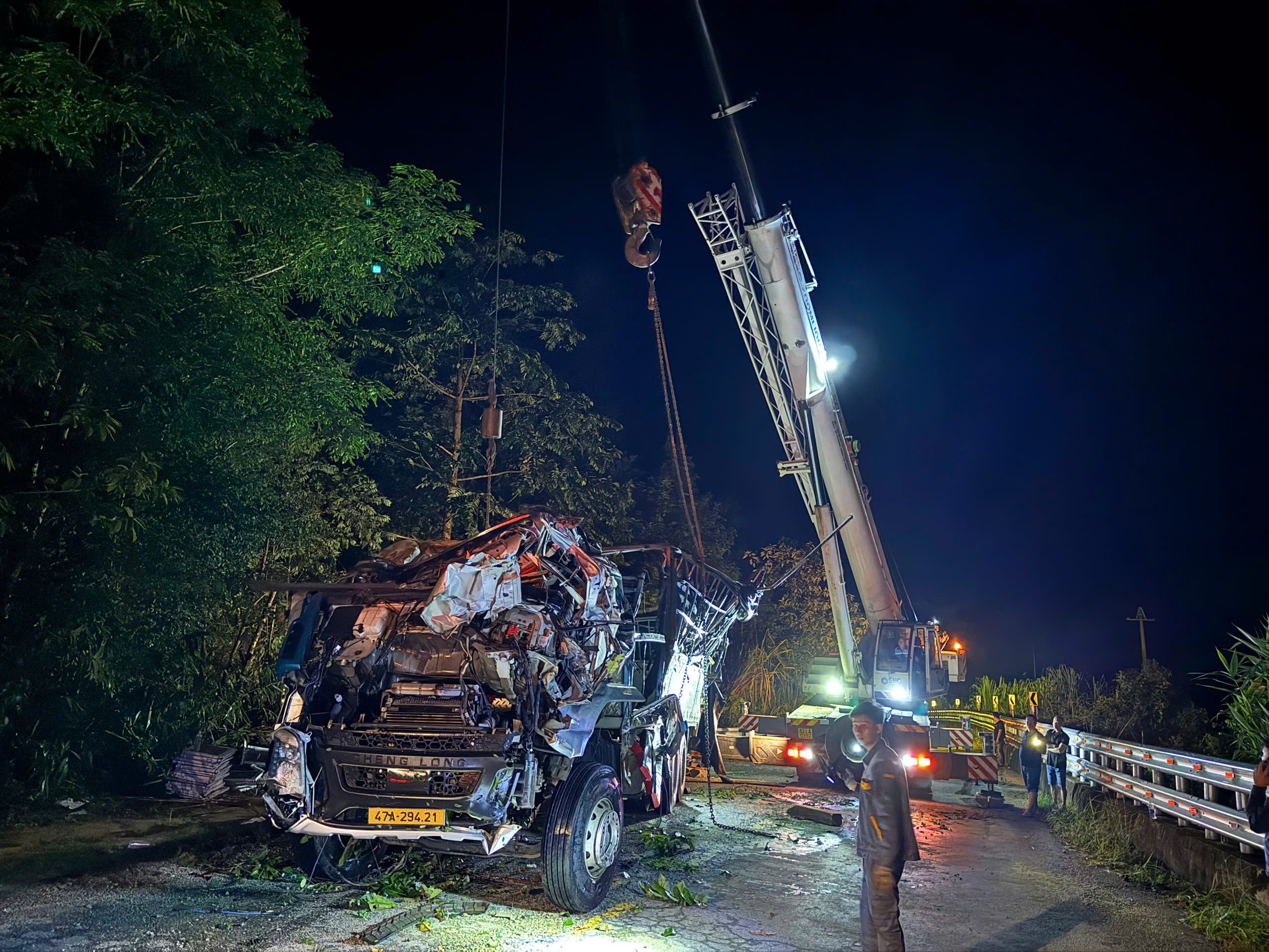 Trong vụ tai nạn, chiếc xe tải bị rơi xuống vực sâu khoảng gần 30m, khiến việc cứu hộ gặp nhiều khó khăn.