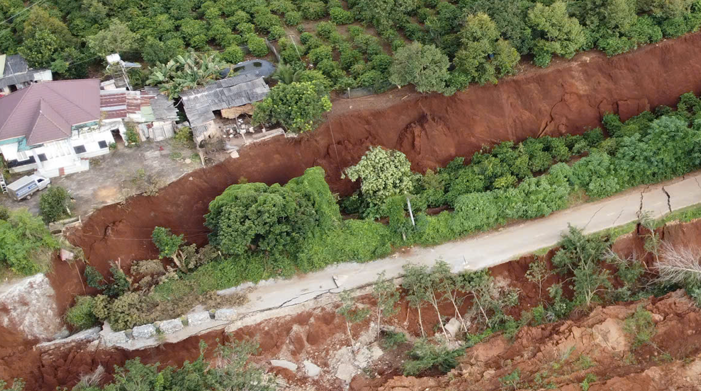 Cũng theo ông Tâm, tuyến đường bị sụt lún được xây dựng từ năm 1996, hiện khối sạt trượt kéo dài khoảng 500m, sâu đến 30m, có nguy cơ mở rộng hơn 1km.