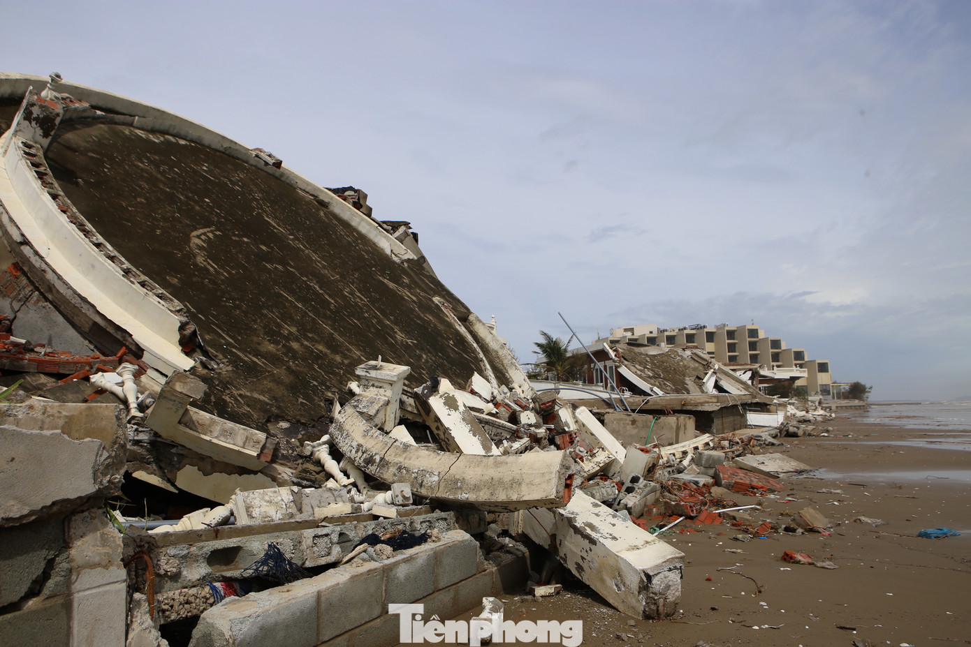 Sau bão số 10 cho thấy, khu vực ven biển nơi xây các căn villa không có dấu hiệu của hệ thống cọc dự ứng lực hay kè chắn sóng.