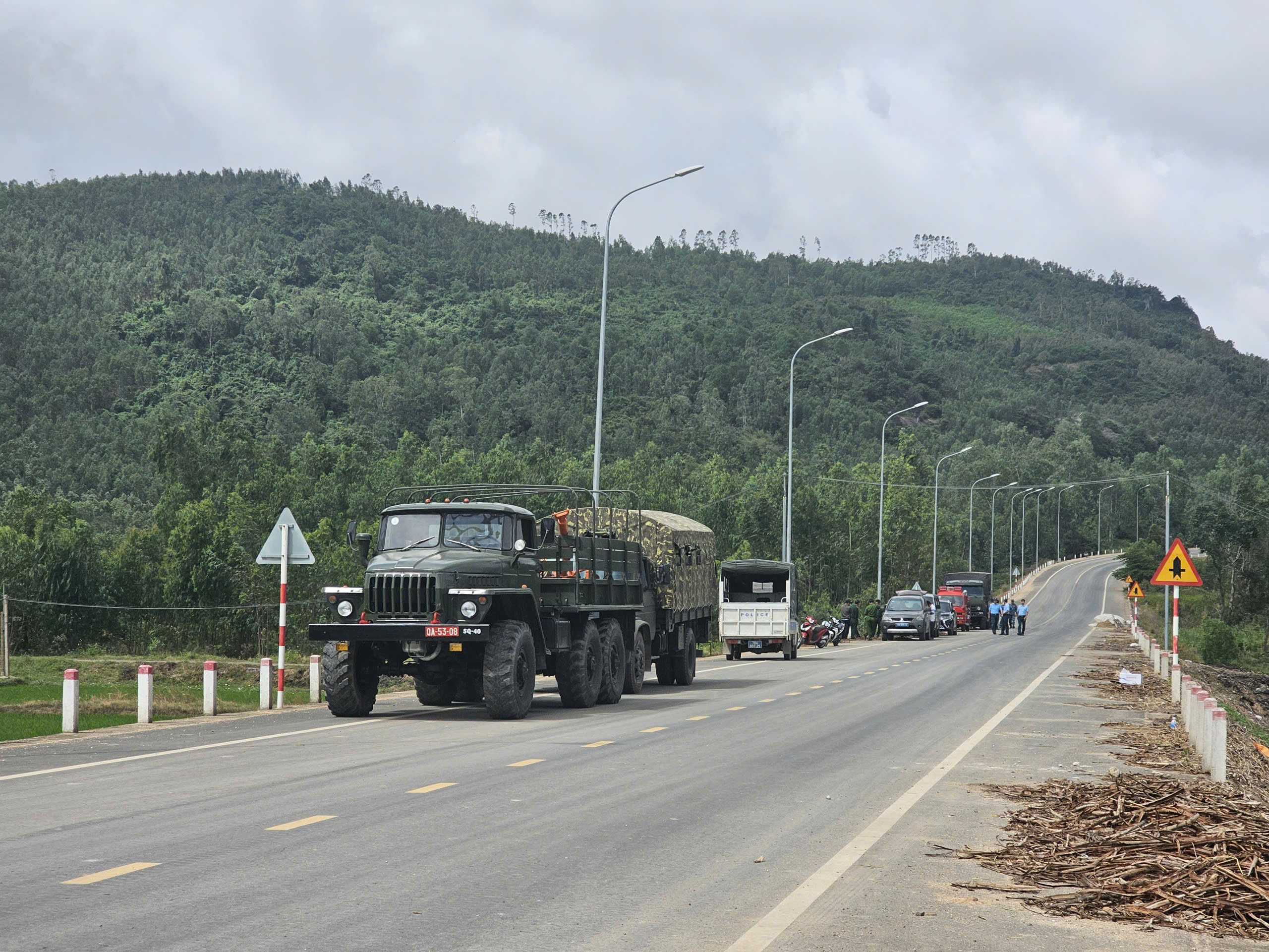 Lực lượng chức năng phong tỏa đường vào khu vực máy bay rơi tại xã Đông Hòa, tỉnh Đắk Lắk.