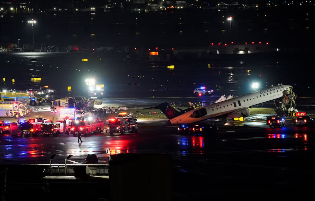 Hiện trường vụ tai nạn xảy ra đêm 22/3 tại sân bay LaGuardia (Mỹ). Ảnh: REUTERS/Bing Guan.