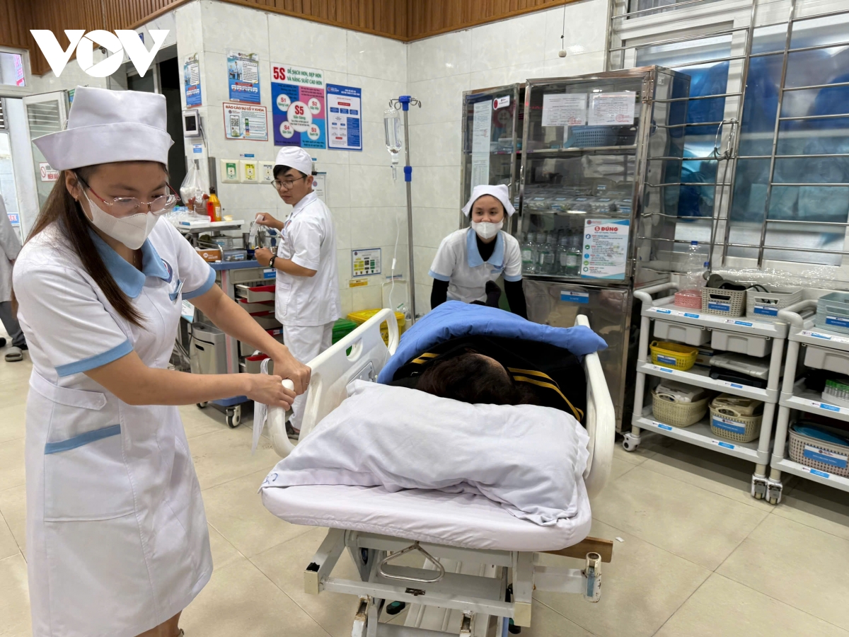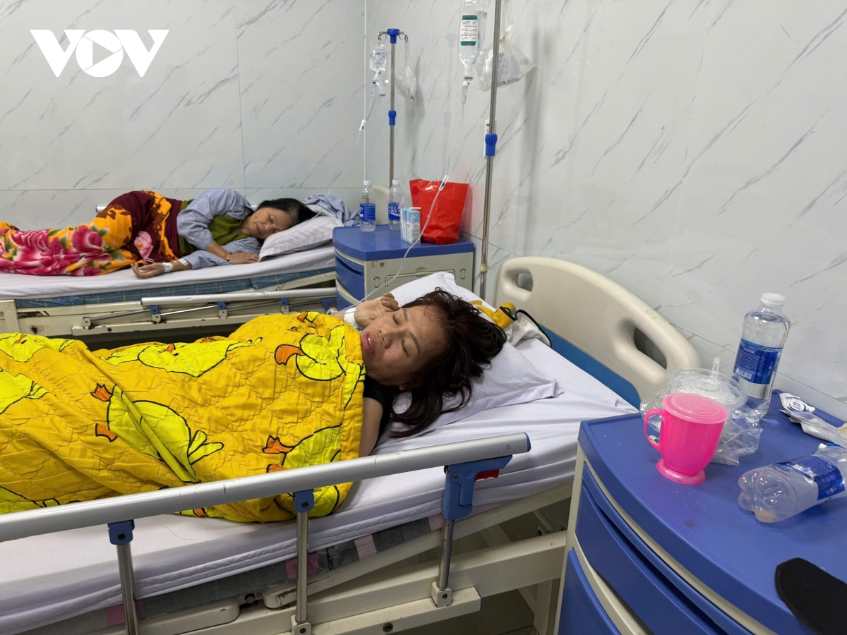 Nhân viên y tế chăm sóc sức khỏe những người nghi bị ngộ độc thực phẩm sau khi ăn bánh mì Hồng Vân.