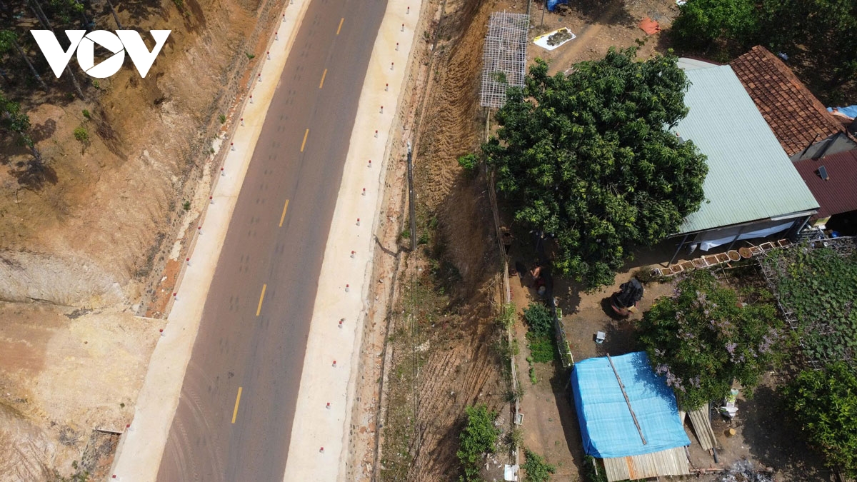 Mặt khác, do địa hình đồi dốc dốc đứng, nhà dân nằm sát phạm vi tuyến khiến việc xử lý mái taluy gặp khó khăn. Bên cạnh đó, dù người dân đồng thuận hiến đất, nhưng diện tích hiến không đồng đều và không liên tục, dẫn đến không đủ không gian để mở rộng mái taluy theo tiêu chuẩn, buộc phải thi công mái dốc đứng, tiềm ẩn nguy cơ sạt lở cho các công trình lân cận.