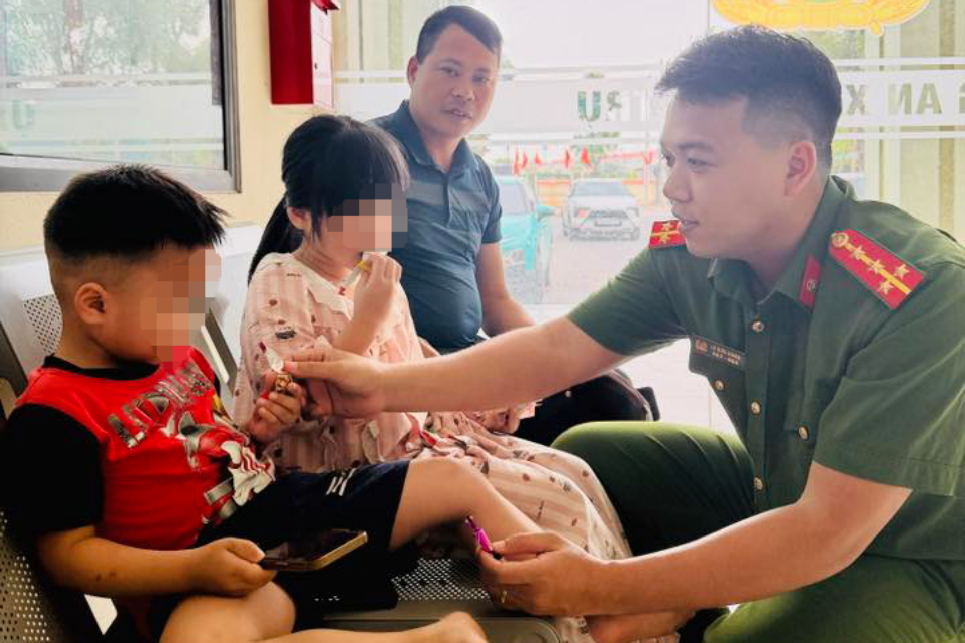Cán bộ công an hỗ trợ, đưa 3 mẹ con chị T trở về.