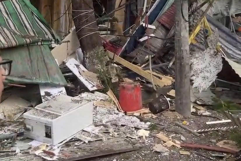Vụ nổ khiến anh Thắng bị bỏng nặng và 3 người khác bị thương, quán ăn “Thắng ốc” cùng hai quán trà sữa ăn vặt liền kề bị hư hại.