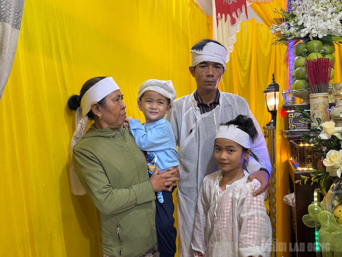 "Hai đứa nhỏ cứ khóc đòi mẹ. Bé lớn thì biết mẹ mất, cứ ngồi thẫn thờ rồi khóc. Còn thằng cu 3 tuổi thì chưa biết nhưng có lúc gào khóc đòi mẹ, tôi đành phải nói "mẹ đi làm chưa về" nhưng không dám nhìn vào mắt con" - anh Nghĩa bật khóc.