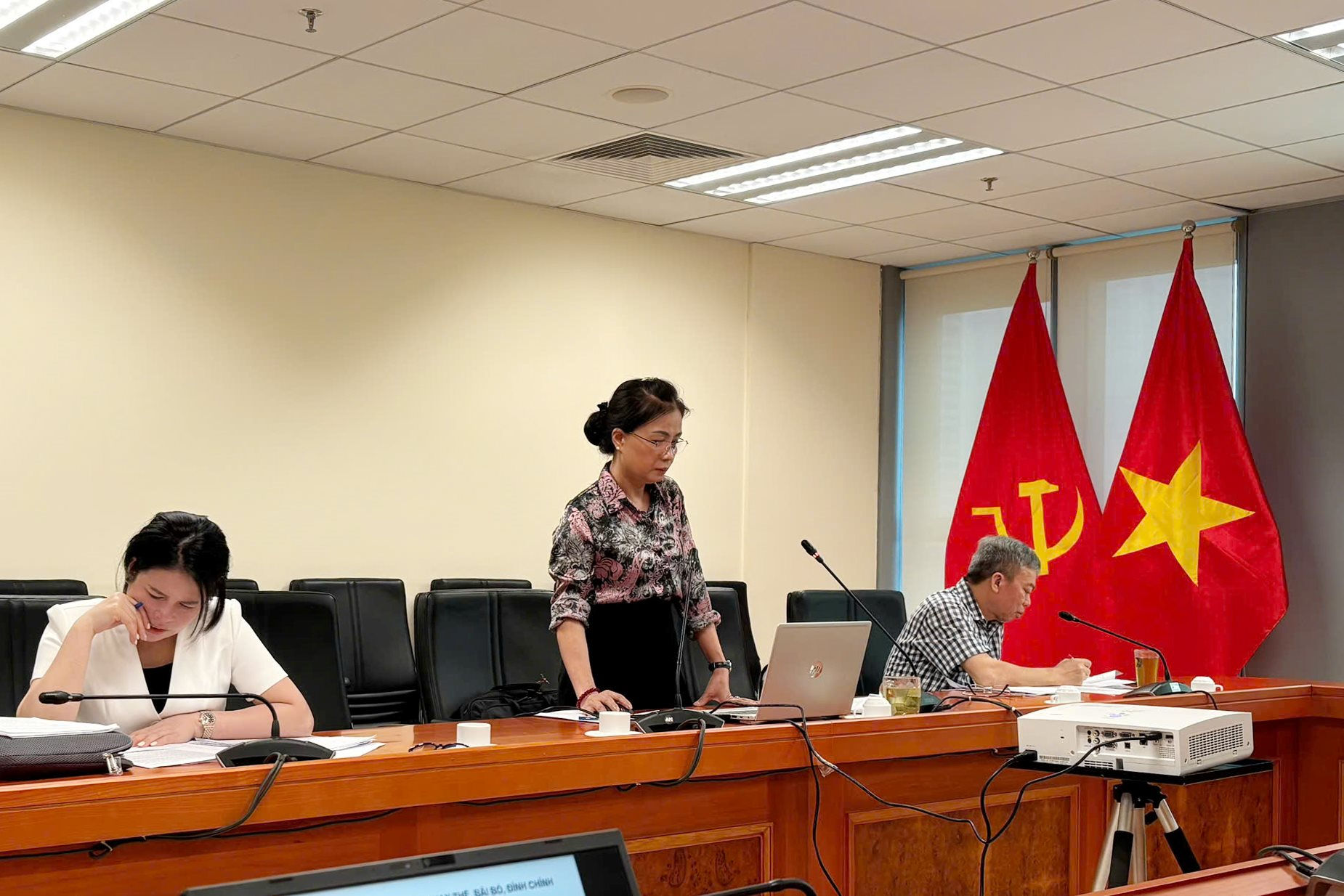 Phó Vụ trưởng Huỳnh Hữu Thọ trao đổi một số thắc mắc liên quan đến công tác thẩm định. Ảnh: Khánh Tùng