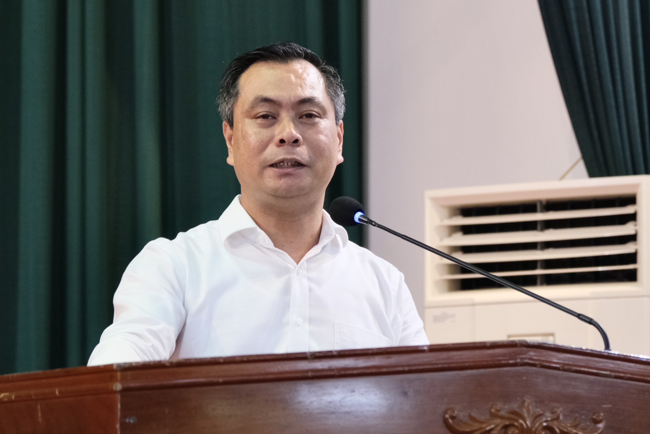 Hiệu trưởng Phạm Văn Long tại buổi đối thoại với sinh viên. Ảnh: Ngọc Bích.