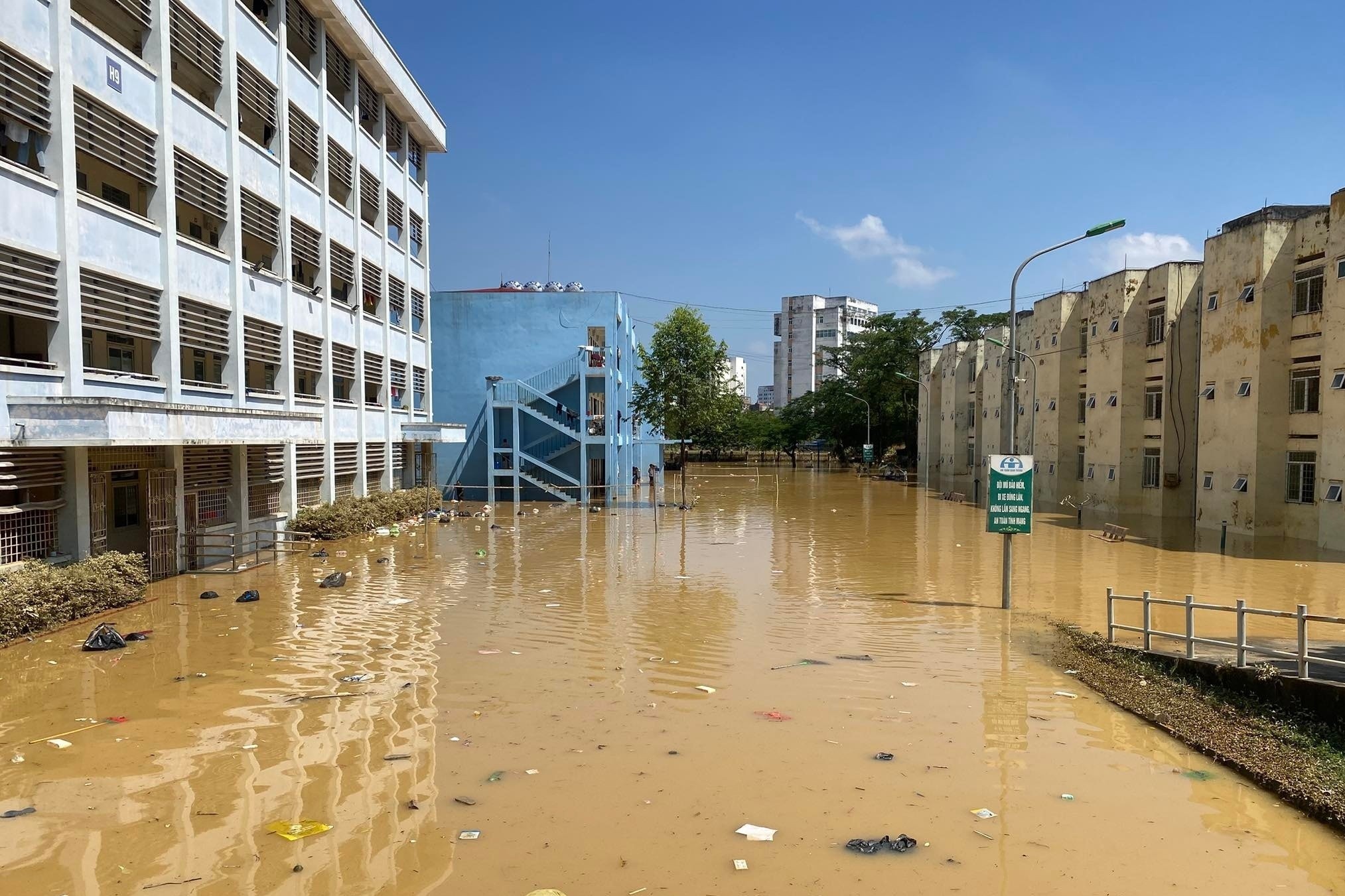 Nhà trường cho hay trường nằm trong khu vực ngập sâu của tỉnh, là một trong những điểm chịu ảnh hưởng nặng nề nhất sau trận bão lũ vừa qua.