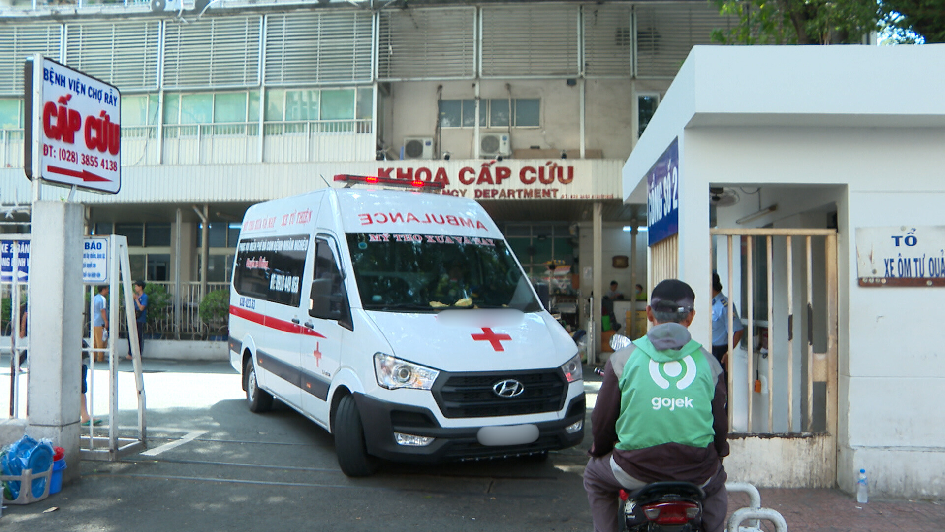 Một xe cứu thương đón trả người bệnh tại Bệnh viện Chợ Rẫy. Ảnh minh họa