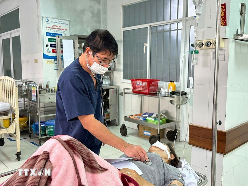 Các nạn nhân vụ tai nạn được thăm khám tại Bệnh viện Đa khoa Quảng Nam. (Ảnh: TTXVN phát)