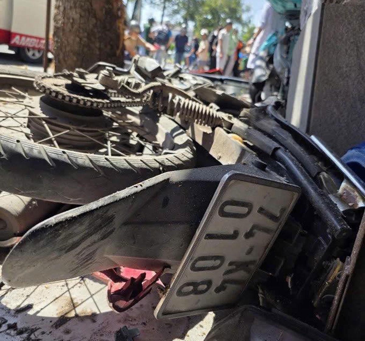 Chiếc xe máy của Cương bị biến dạng