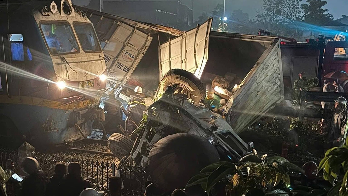 Đại diện Tổng Công ty Đường sắt Việt Nam xác nhận vụ việc và cho biết xe tải bị mắc kẹt trên đường ray dẫn đến va chạm.