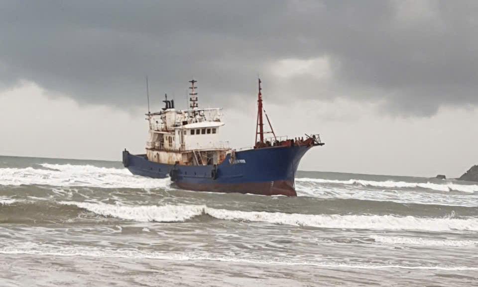 Tàu vỏ sắt mắc cạn ở vùng biển Dung Quất.