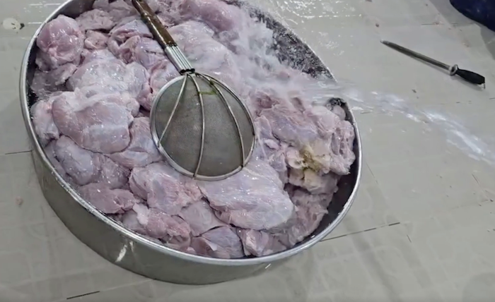 Thực phẩm quá hạn, chưa rõ nguồn gốc chế biến thành bữa ăn cho học sinh ở TPHCM. Ảnh: Chụp màn hình từ báo Dân Việt