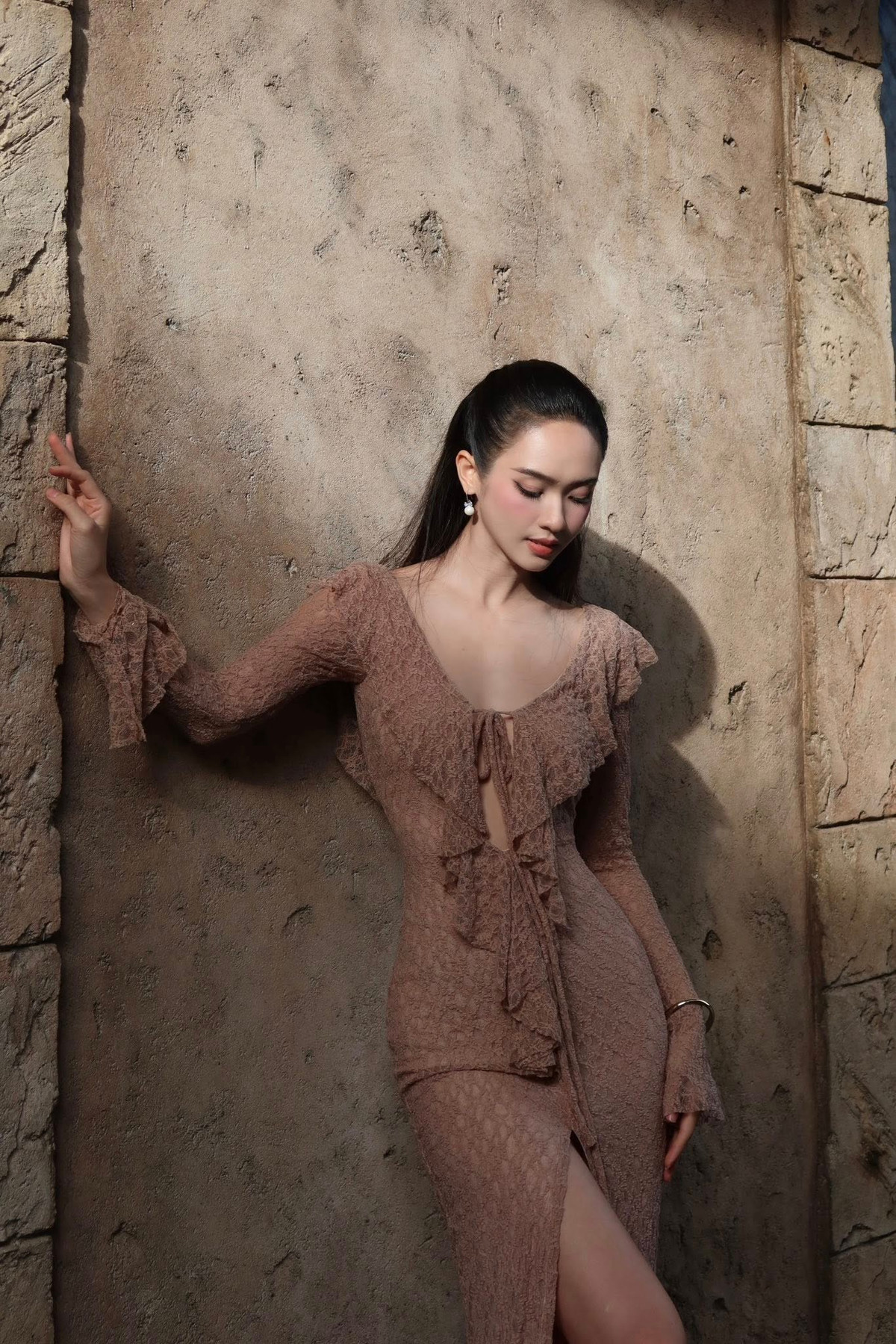 Bộ trang phục tôn triệt để đường cong cơ thể, đặc biệt là vòng eo nhỏ gọn cùng vóc dáng nuột nà của nàng Á hậu.