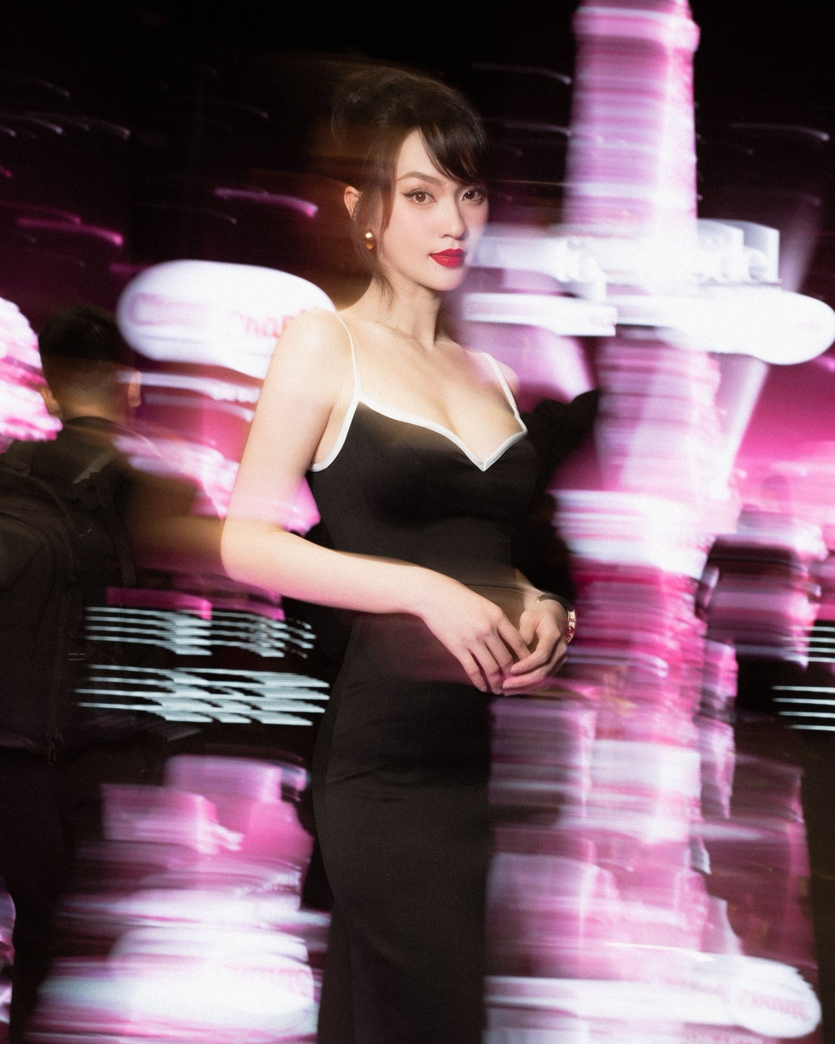 Tại sự kiện, Á hậu Vũ Thúy Quỳnh lựa chọn thiết kế đầm ôm sát cơ thể, phần ngực khoét sâu và trễ nải khoe trọn vòng 1 căng đầy.