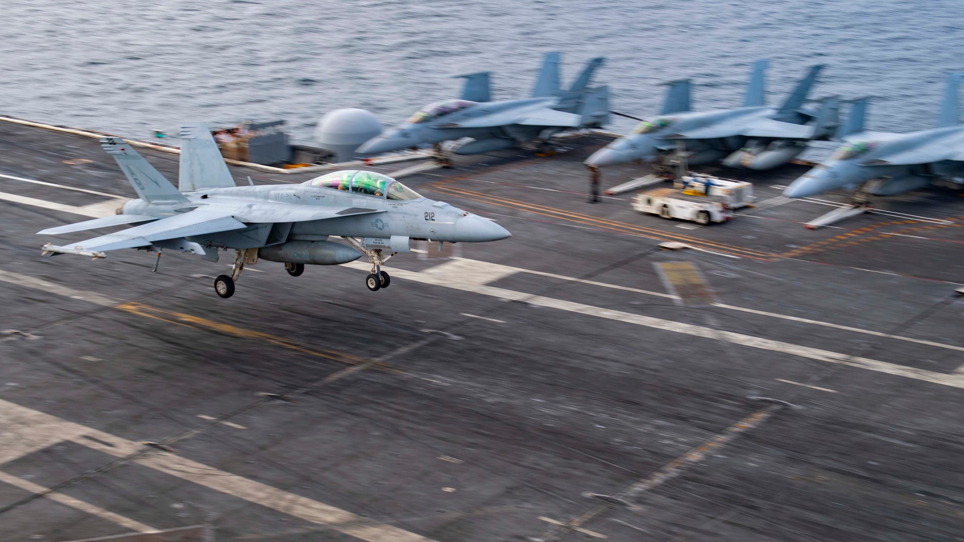 Khoảng nửa giờ sau, một chiếc F/A-18F Super Hornet thuộc Phi đoàn Tiêm kích số 22 cũng xuất phát từ tàu sân bay này để thực hiện bài huấn luyện bay đêm thì gặp trục trặc kỹ thuật.