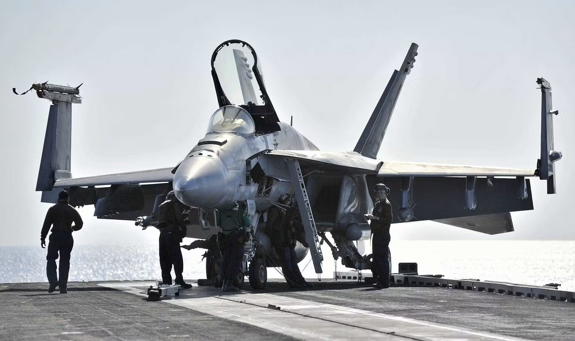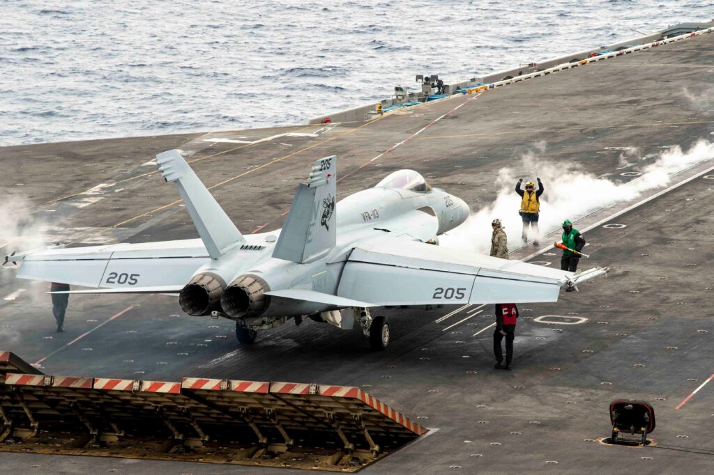Trên boong tàu sân bay, tiếng gầm của F/A-18E/F Super Hornet vẫn là âm thanh quen thuộc – biểu tượng cho sức mạnh không lực Mỹ giữa đại dương.