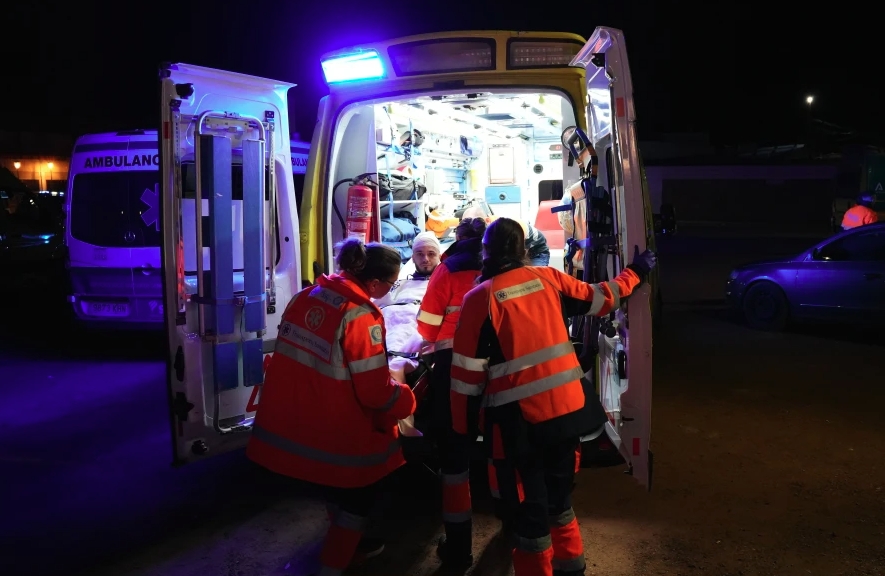 Lực lượng cứu hộ đưa người bị nạn lên xe cứu thương. Ảnh: AP