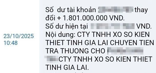 Ngày 23/10, Công ty TNHH Xổ số kiến thiết Gia Lai đã trả thưởng cho ông P.D.L. (45 tuổi, trú xã Vệ Giang, tỉnh Quảng Ngãi) sau khi xác minh ông này đủ điều kiện nhận thưởng.