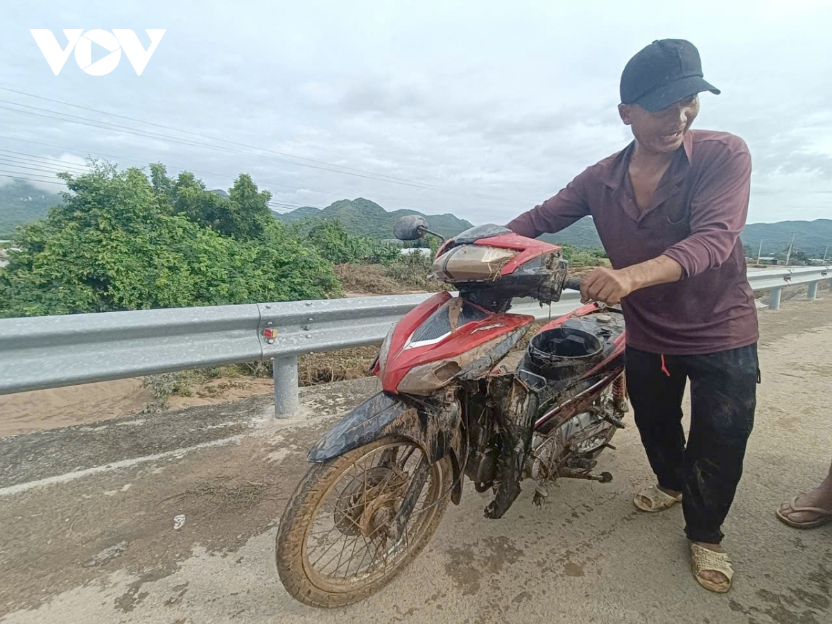 Một người dân tìm lại được xe máy bị lũ cuốn trong đêm