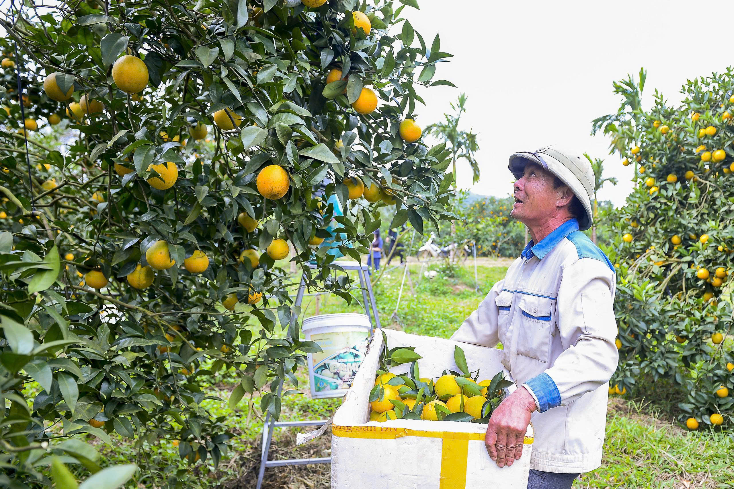 Năm nay, cam được đánh giá có chất lượng tốt, đẹp hơn so với các năm trước, đặc biệt là giống cam Vinh lòng vàng. Trung bình mỗi cây cam Vinh lòng vàng cho năng suất 150kg/cây.